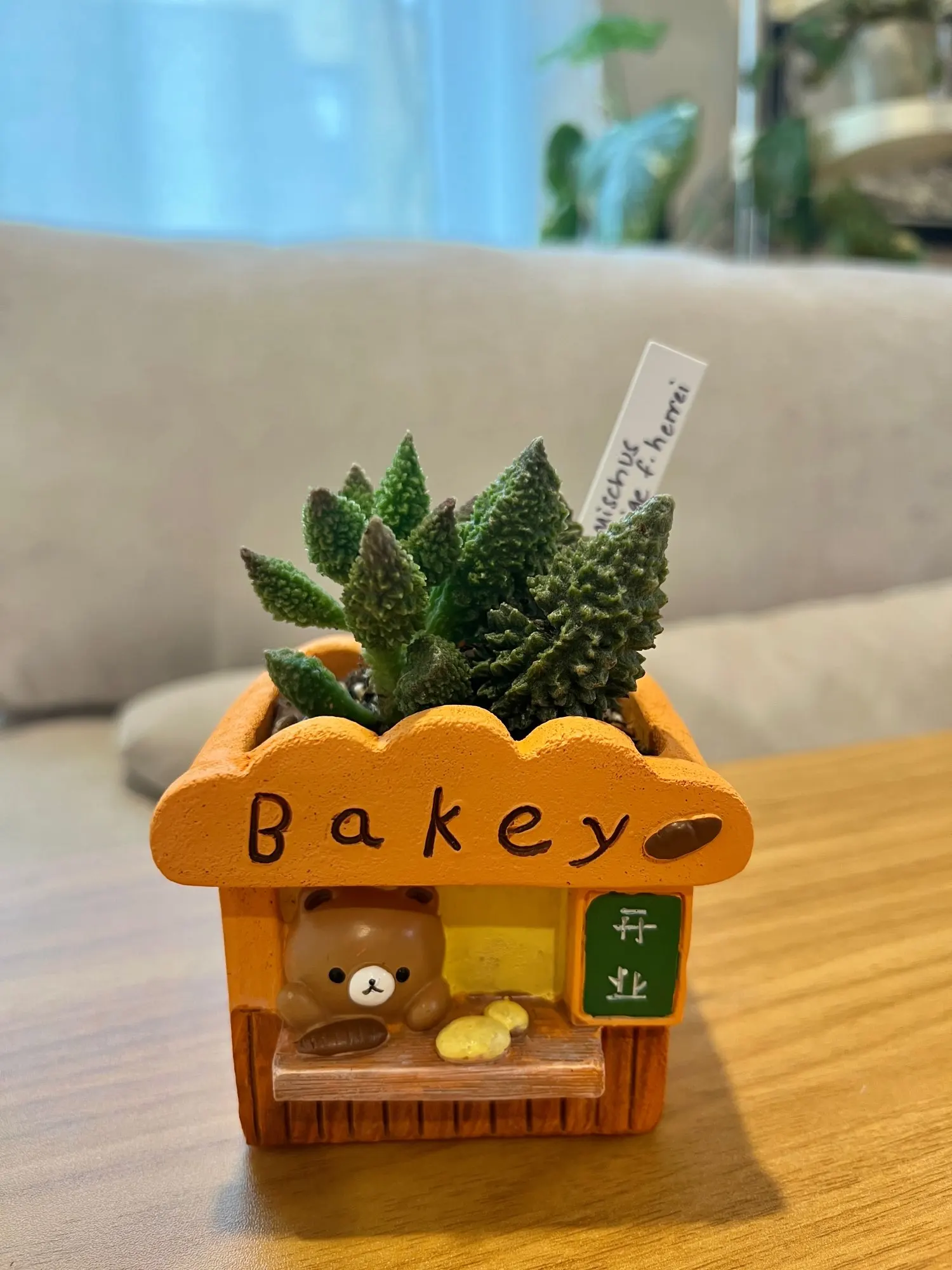 Cute bear bakery planter held in hands, whimsical decor from Germiant